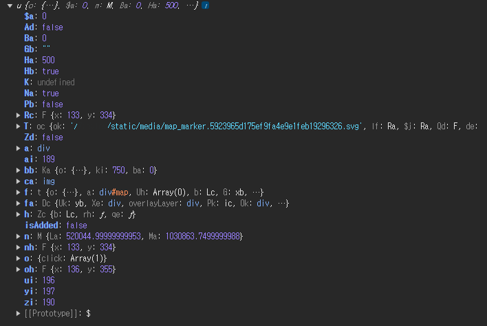 위의 이벤트를 통해 marker 정보를 찍어보면 아래와 같은 정보가 나옵니다!