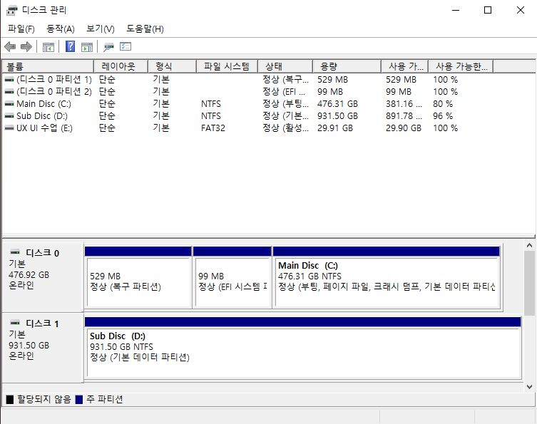 재부팅을 2번정도 하고 난 후 디스크를 정상적으로 인식했네요.